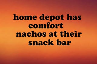 Home depot has comfort nachos at their snack bar