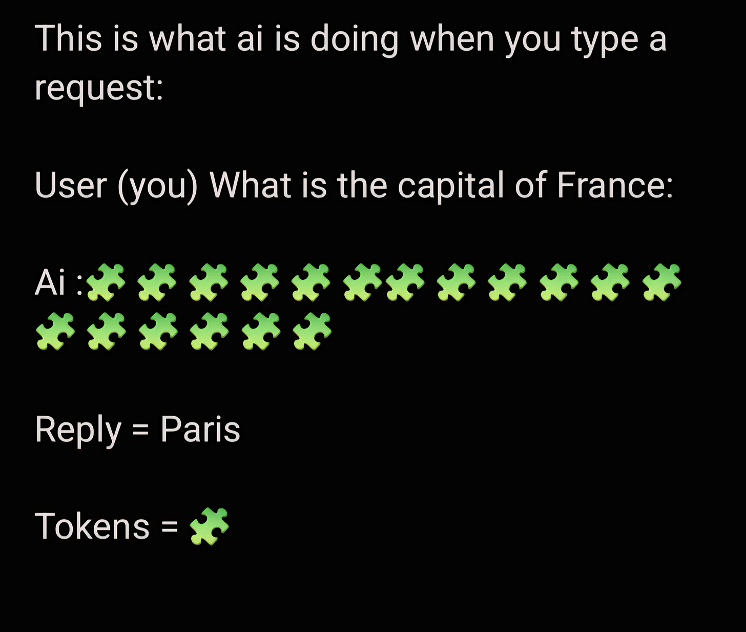Think of tokens like 🧩 puzzle pieces that words get broken into.
