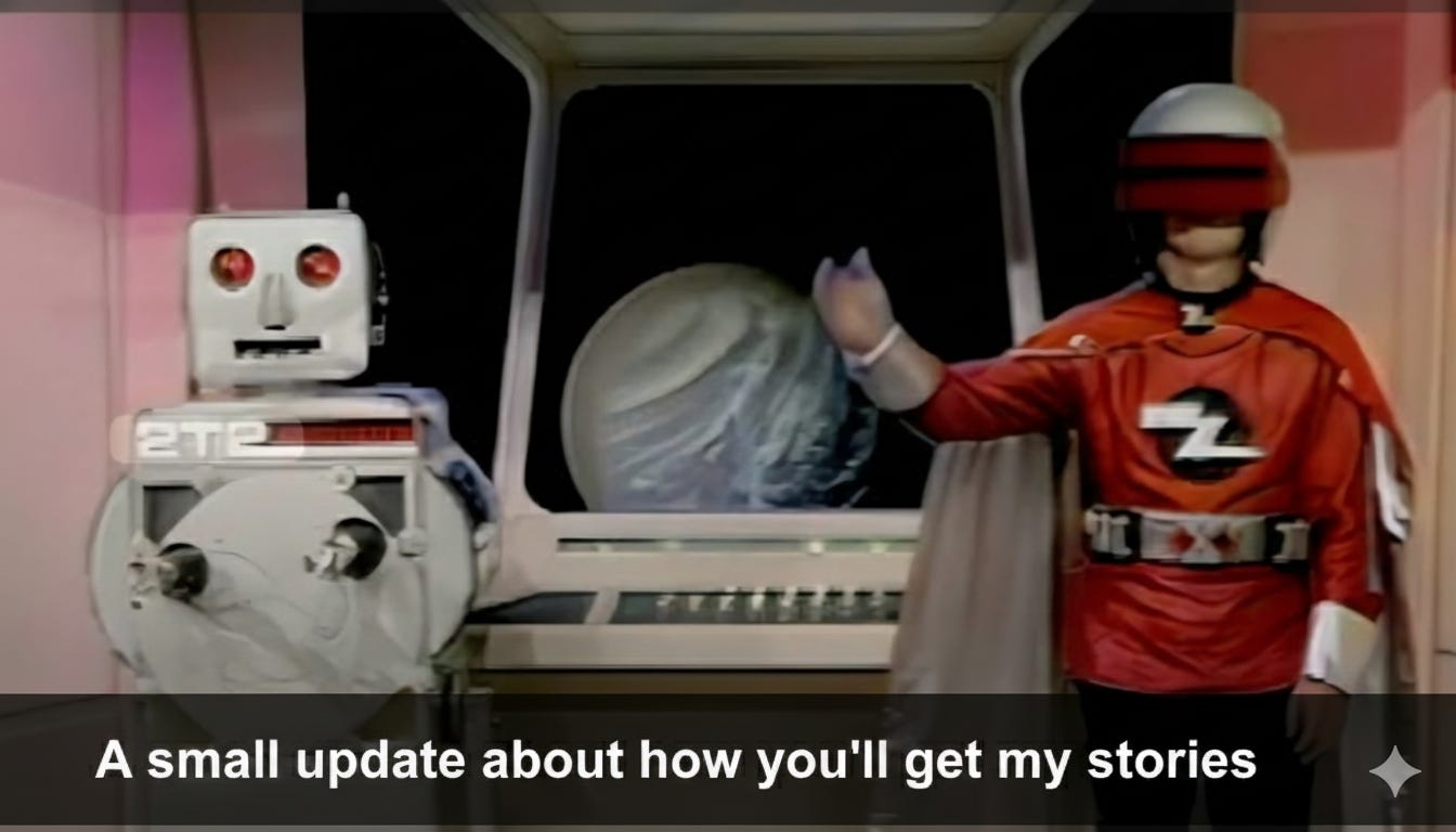 So here’s what I’m thinking: starting with my next story, I’ll turn on email delivery for new posts. That’ll be roughly two short emails a week, nothing more.